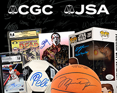 Cards, comics and magazines may be submitted for CGC grading. For CGC services visit cgcgrading.com. Please note that cash is not accepted as payment for CGC and JSA services at this event. |